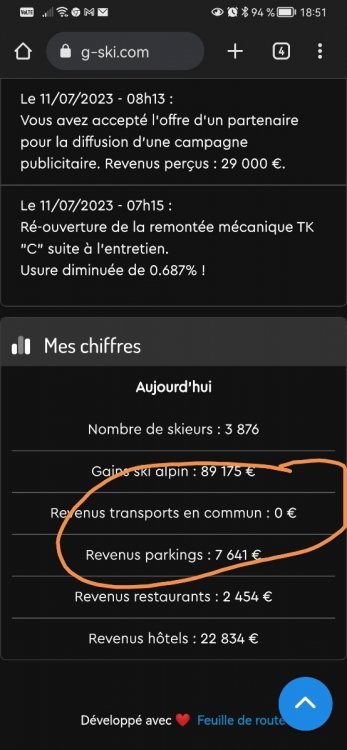 20. Bonsoir Ce soir en regardant mes gains journalier je me suis aperçu que les gains des transports étaient à zéro Merci de votre aide